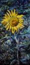 Painted Barrio Wall, Hollyhocks, and Prickly Pear